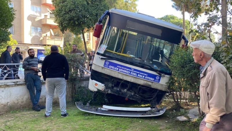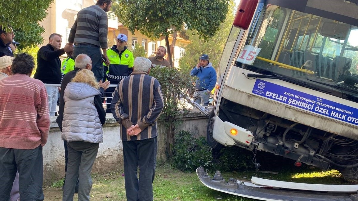 Efeler ilçesinde arızalanan ve tamirci tarafından sanayiye götürülmek istenen minibüs, önüne çıkan motosiklete çarpmamak için ani manevra yapınca evin bahçesine girdi.