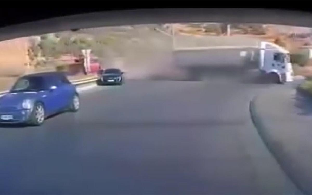 Tırın hızlı bir şekilde gelerek otobüse çarpması görüntülendi.
