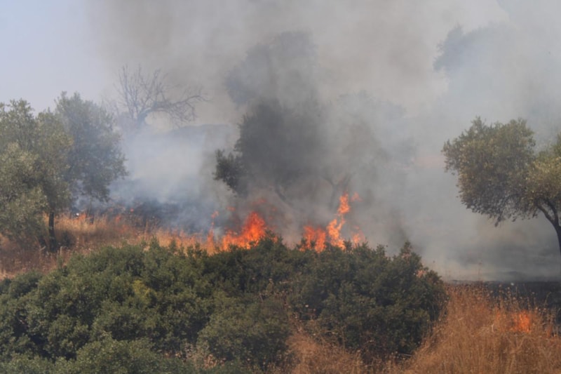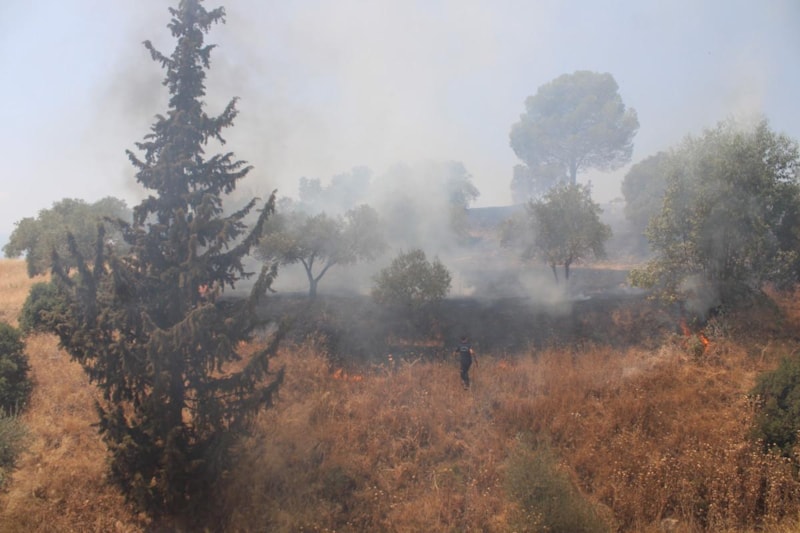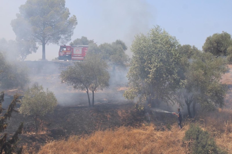 Aydın'ın Efeler ilçesinde bulunan Kemer Mezarlığı'nın yeni defin alanının olduğu bölgenin üst tarafında bulunan arazide yangın çıktı.