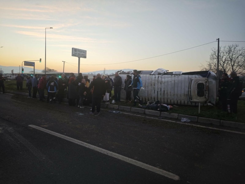 Fabrika işçilerini taşıyan S.Y.'nin kullandığı servis minibüsü devrildi.