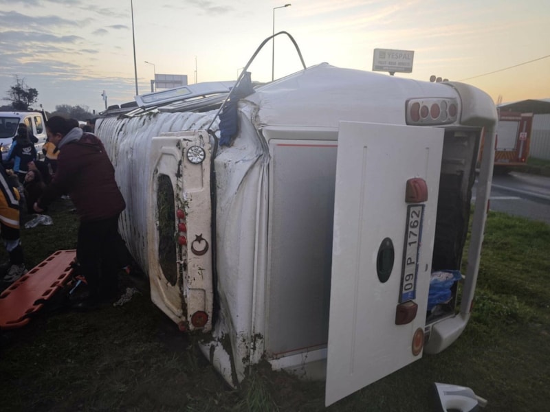 Aydın'ın Sultanhisar ilçesinde fabrika işçilerini taşıyan servis minibüsünün devrildiği kazada, 16 kişi yaralanarak hastaneye kaldırıldı.