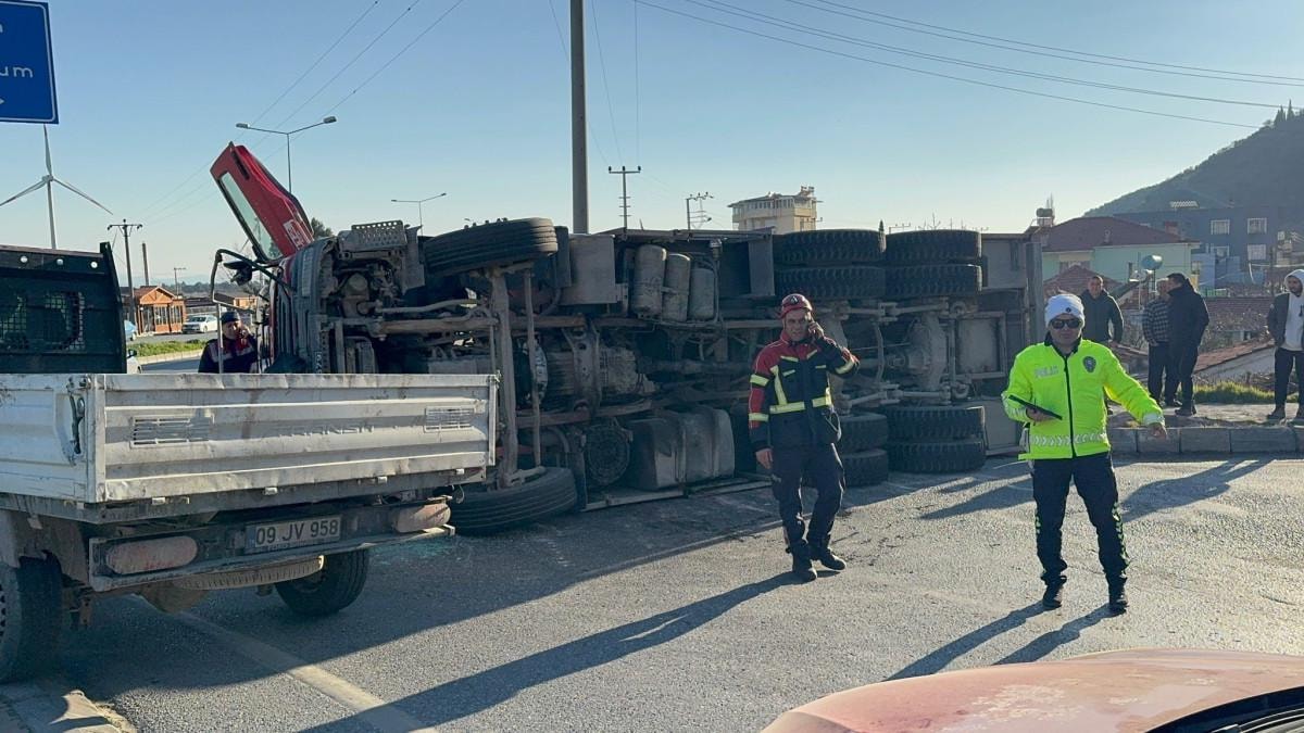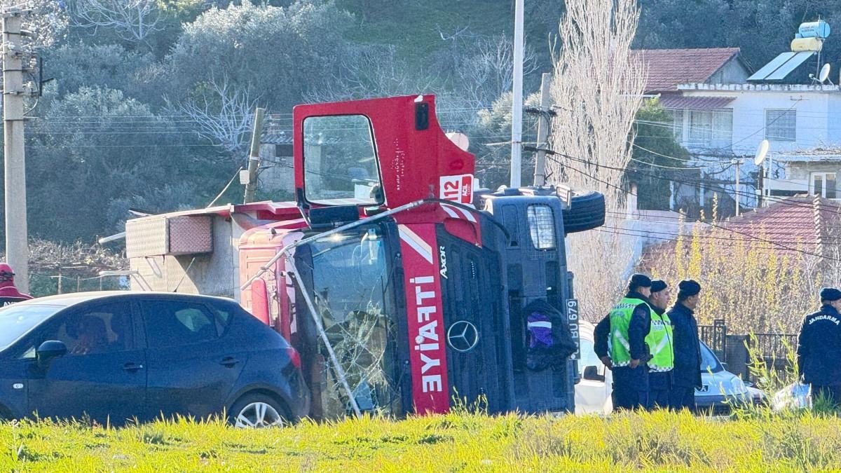 Aydın'ın Söke ilçesinde itfaiye aracı devrildi.