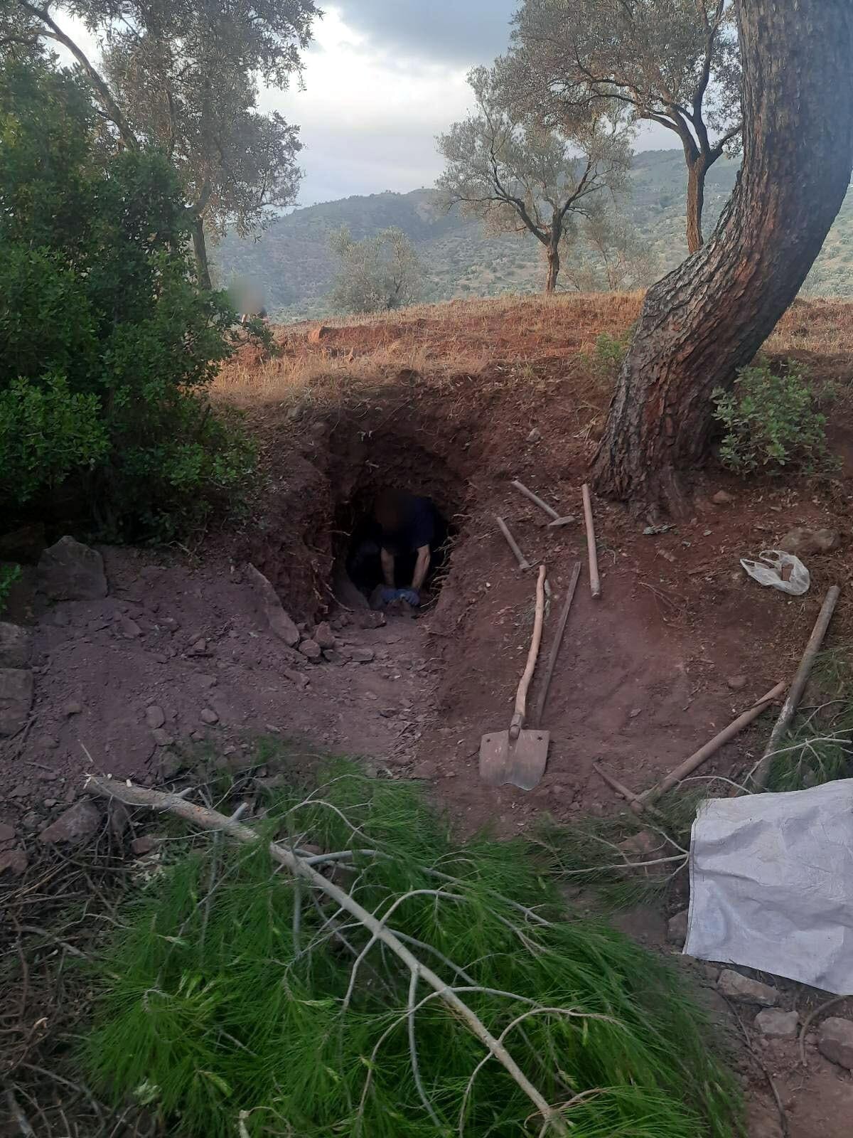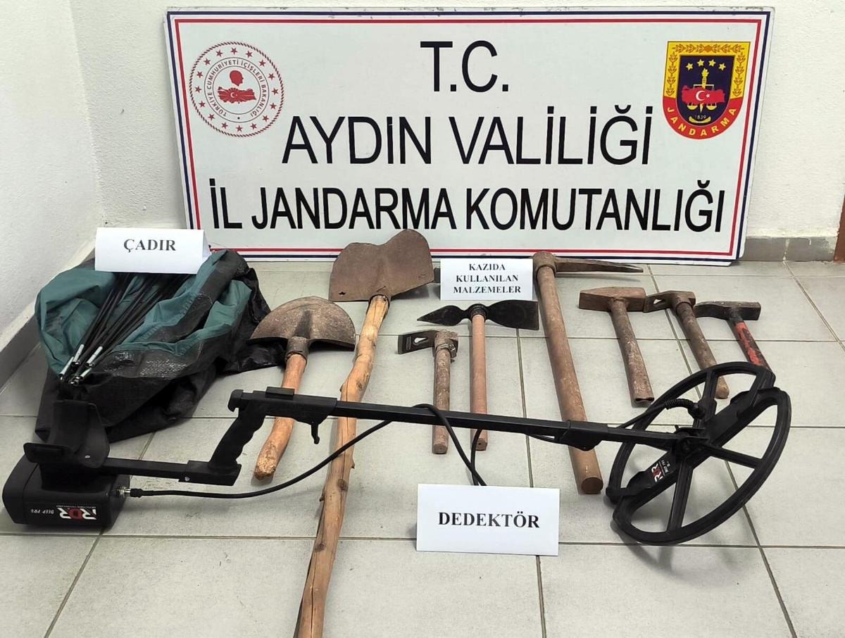 Aydın'da Köşk İlçe Jandarma Komutanlığı'na bağlı ekipler, devriye görevi sırasında Kızılyer Mahallesi'nde izinsiz kazı yapıldığını fark etti.