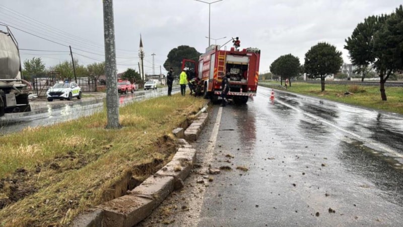 Aydın-İzmir otoyolunda meydana gelen bir trafik kazasına müdahale eden Germencik İtfaiye Grup Amirliği’ne ait ekipler, İncirliova ilçesi girişinde kaza yaptı. Edinilen bilgilere göre, İncirliova yönüne ilerleyen Turgay Avcu’nun kullandığı 09 AB 343 plakalı itfaiye aracı, yoğun yağış nedeniyle direksiyon kontrolünü kaybetti. Araç, orta refüje çıkarak ancak durabildi.