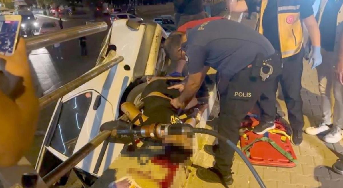 Çarpmanın etkisi ile sürücü araçtan fırladı ve vücuduna demir boru korkuluk saplandı.