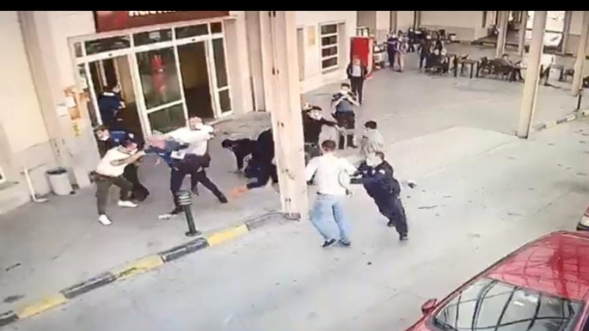 Olay sonrası gözaltına alınan 10 şüpheli, sağlık kontrolü için götürüldükleri hastanede karşılaşınca yine arbede yaşandı.