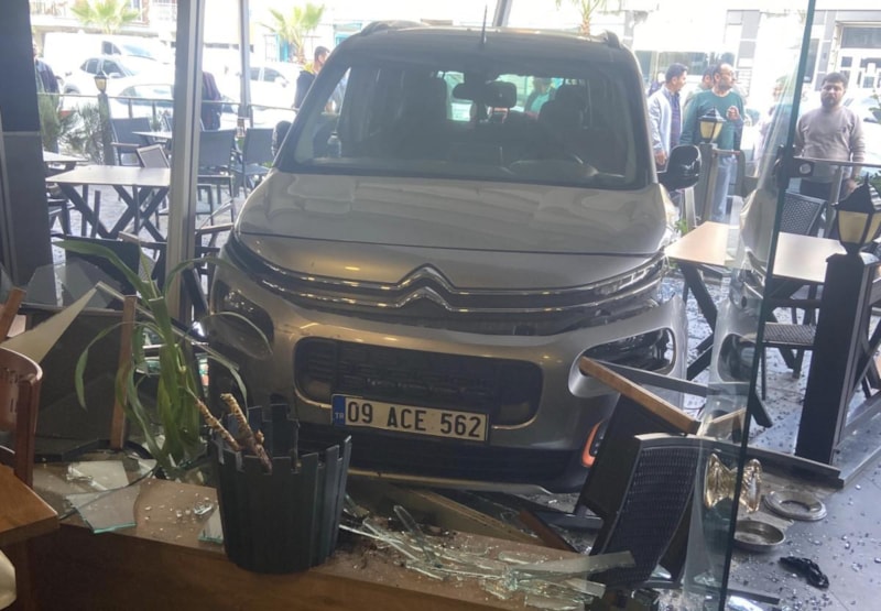 Aydın'ın Efeler ilçesinde, 15 yaşında E.E.C.'nin kullandığı iddia edilen ticari araç çevre bulvarı üzerinde başka bir araca çarparak yol kenarında bulunan bir iş yerine daldı.