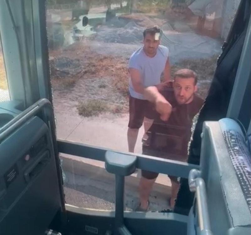 Daha sonra otomobildekiler otobüsün önünü kesti.