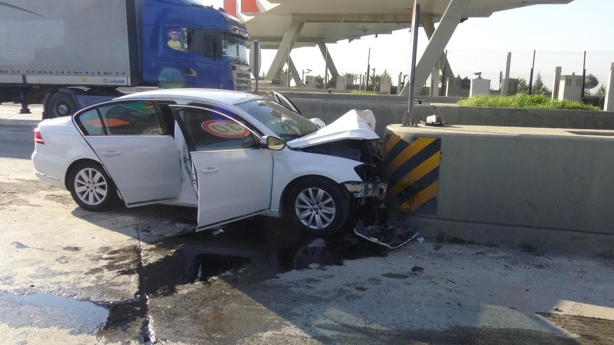 Aydın'dan İzmir yönüne giden 46 yaşındaki Ali İlkimen yönetimindeki otomobil, sürücüsünün kontrolünden çıkarak, otoyol gişelerine çarptı.