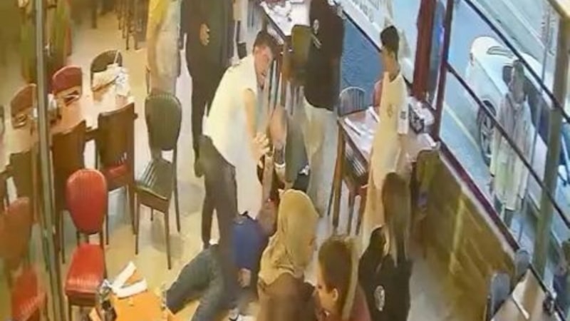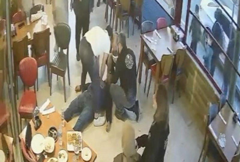 Bu anlar, iş yerinin güvenlik kameralarına da yansıdı.