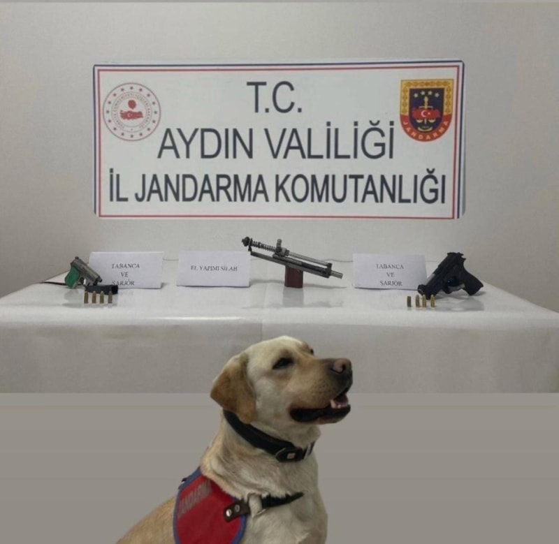 Aydın'ın Söke ilçesinde bir şahsın sosyal medya hesabından ateşli silah ile fotoğraf paylaşması üzerine harekete geçen jandarma ekipleri şüpheli şahsın evinde 3 tabanca, 2 şarjör ve 8 adet de fişek ele geçirdi.