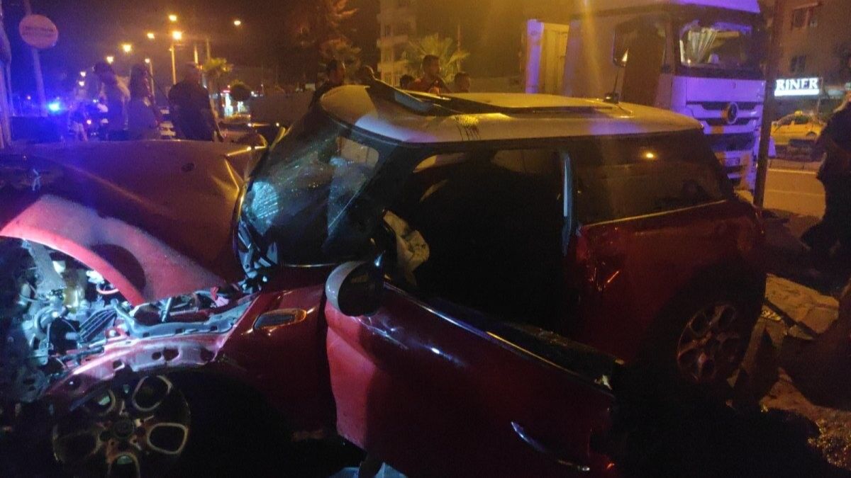 Kontrolden çıkan otomobil orta refüje çarptıktan sonra aynı yöne gitmekte olan Ali Güden (55) yönetimindeki tıra çarptı.