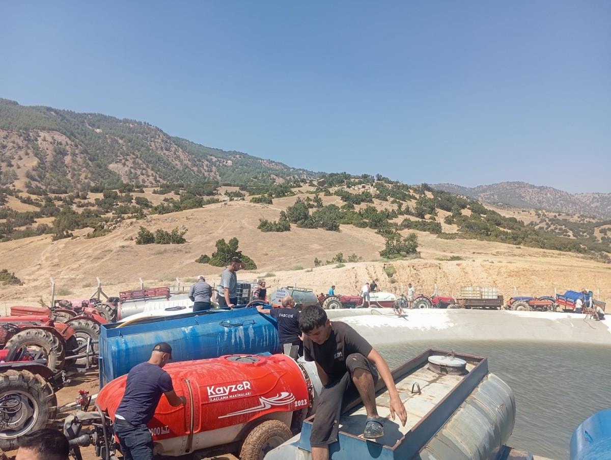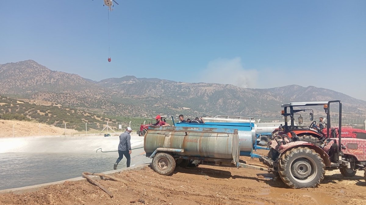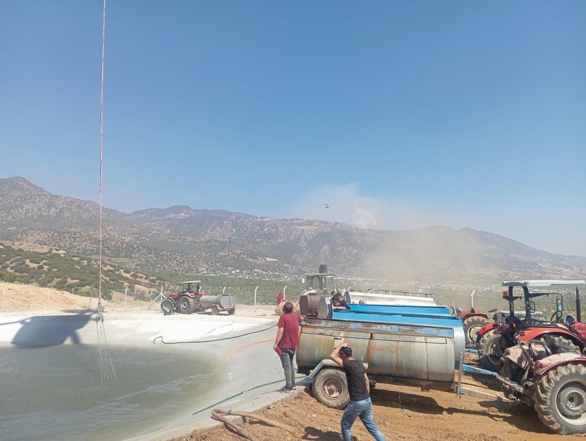 - Vatandaşlar traktörlerle yangın havuzlarına su taşıyarak ekiplere destek veriyor.