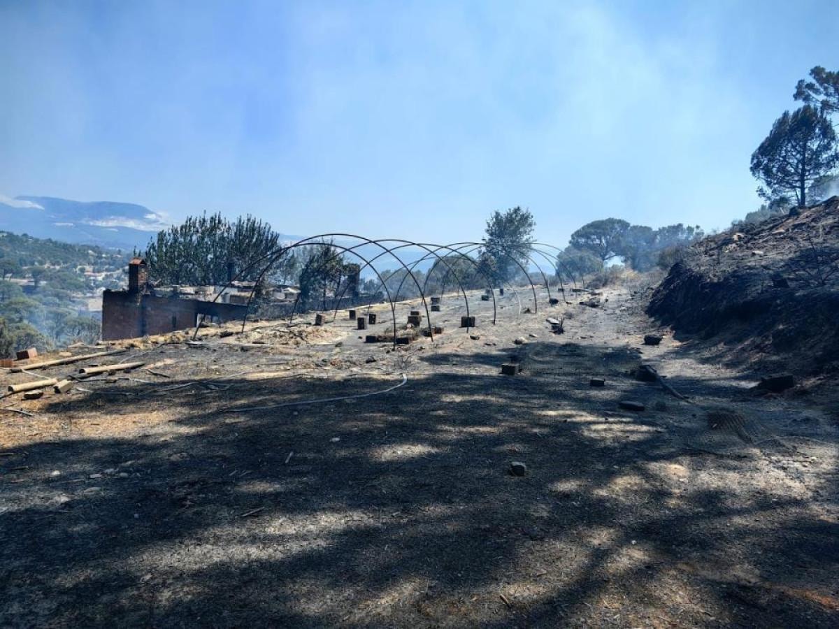 Bölgede soğutma çalışmaları devam ederken, yangında birçok tarım arazisi de zarar gördü.