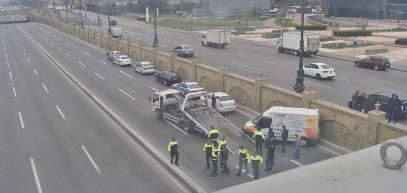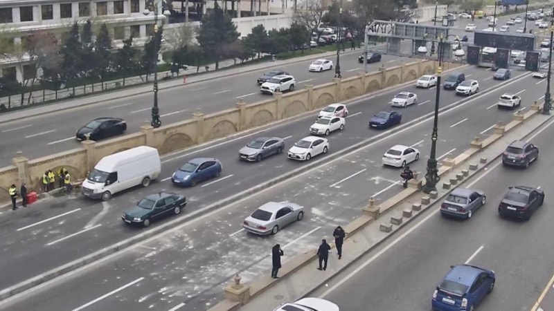 Azerbaycan’ın başkenti Bakü’de yerel saatle 14.30 sıralarında kontrolden çıkan bir otomobil, beton bariyeri yıkıp ana yola uçtu.