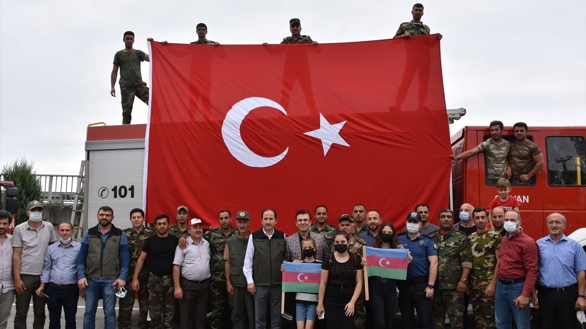 Yaklaşık 2 hafta boyunca süren orman yangınlarını söndürme çalışmalarına destek için gelen Azerbaycanlı itfaiye erleri, ülkelerine dönüş yolunda Trabzon’da coşkuyla karşılandı.