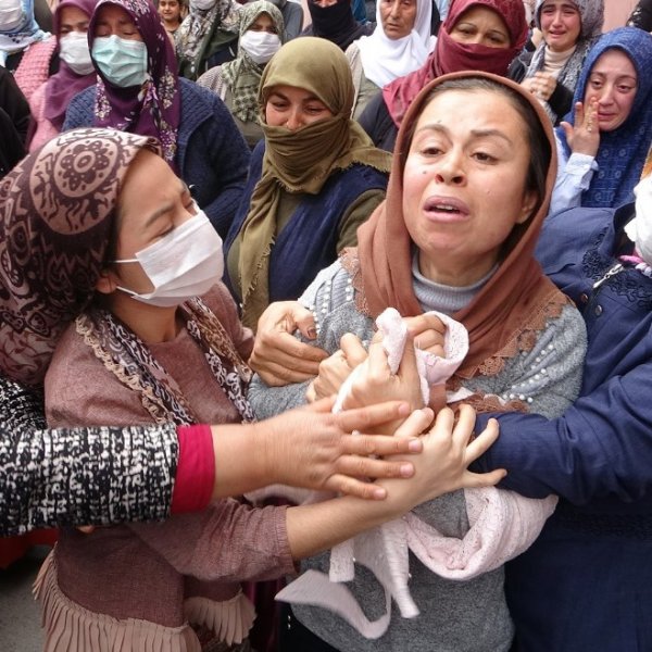 Rukiye Aslan, cenaze töreninden sonra gözyaşları dökerek feryat etti. Anne Aslan, “Cani baban utansın” diye haykırdı.