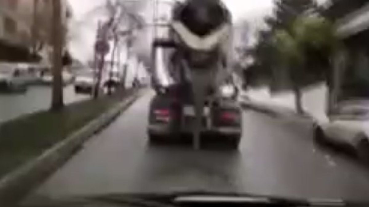Ambulans sürücüsüne hakaretler savurduğu iddia edilen beton mikseri sürücüsü, yola ve araçların üzerine beton harcı döktü.