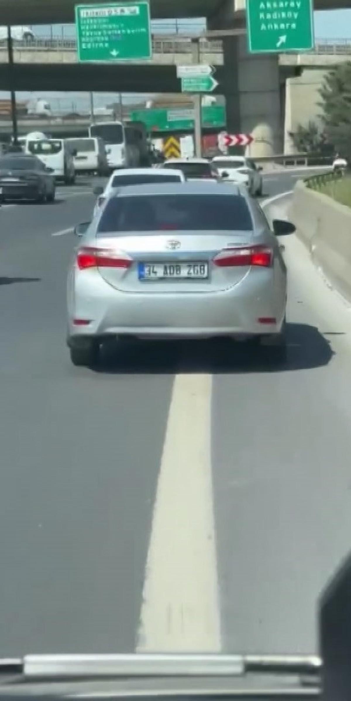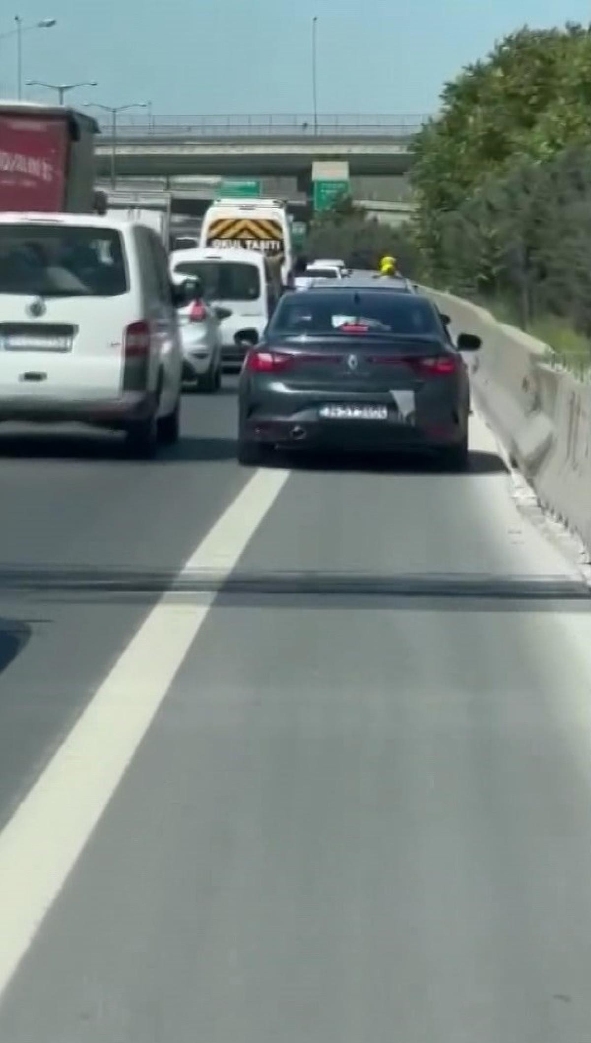Ancak emniyet şeridindeki otomobiller nedeniyle ilerlemekte zorlandı.
