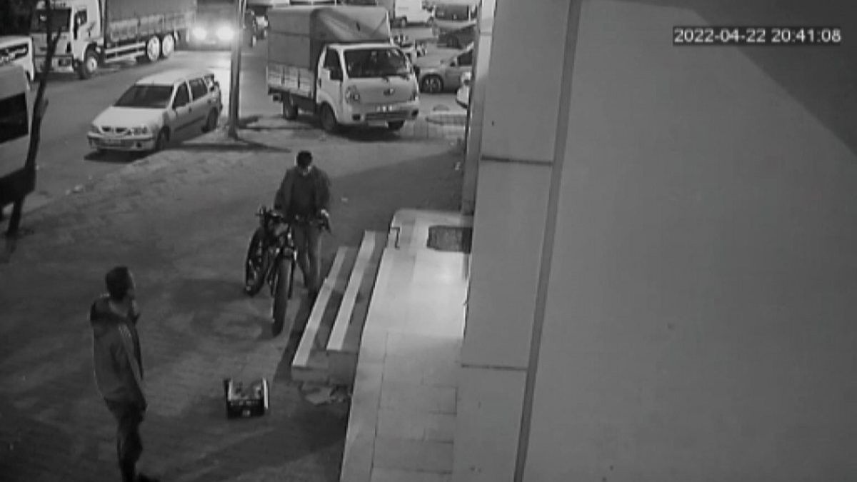 Görüntülerde, iki kişinin sokakta yürürken market önünde duran bisikleti fark ettiği görülüyor. Şüphelilerden birinin bisikleti bir süre incelediği, diğerinin ise biraz ileride beklediği dikkat çekiyor. Şüpheli, çevredeki insanlara aldırış etmeden bisikleti çalıyor.