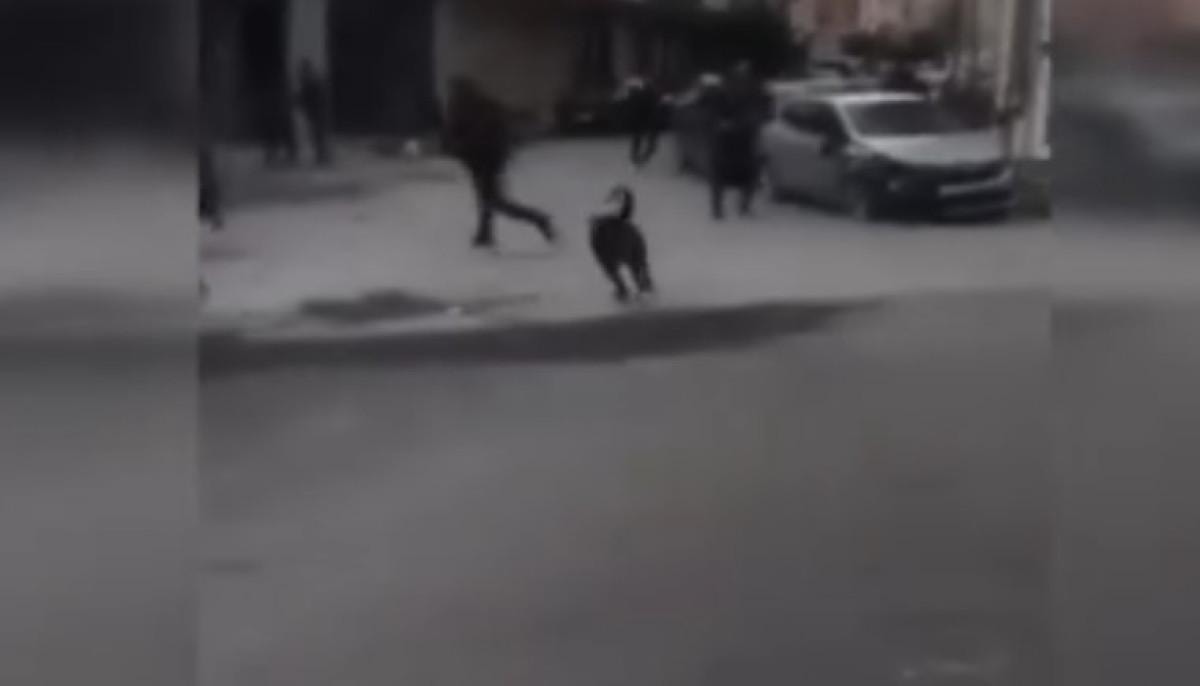 Vatandaşlardan biri, köpeğin kuyruğundan tutarak çekmeye çalışırken, diğeri de bir kürekle köpeği uzaklaştırmaya uğraştı. Yerde yatan yaralı kişiden uzaklaşan köpek, bu kez etraftaki diğer insanlara da saldırmaya devam etti.
