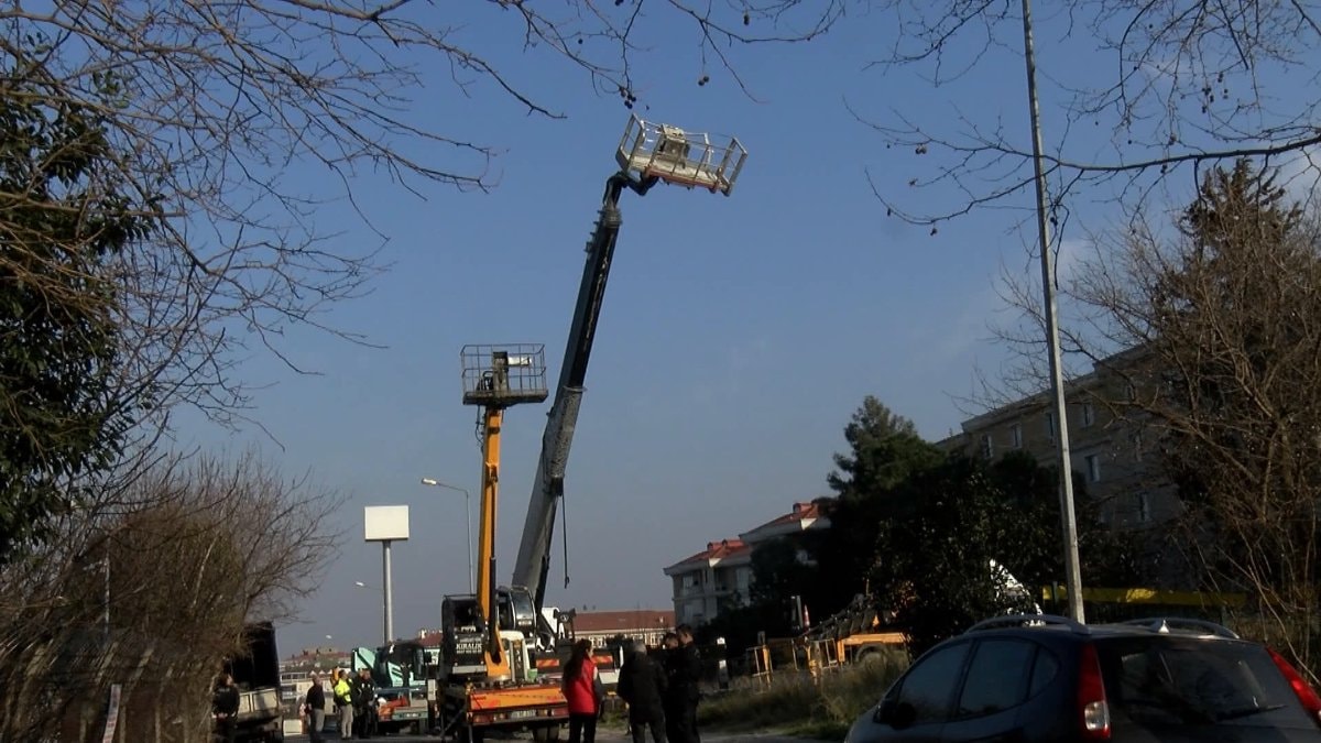 İstanbul Bahçelievler ilçesi, Yenibosna Merkez Mahallesi Ziya Taşkent Sokak üzerindeki boş bir alanda, bugün saat 16.00 civarında bakım çalışması yapan işçiler, bir vincin sepetine binerek yaklaşık 10 metre yükseğe çıkmıştı.