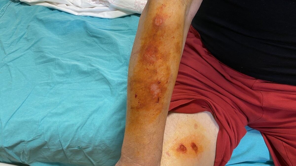 Tozla sıvının karıştığında patlama olduğunu sonradan öğrendim ve şu anda bu durumdayım. Şortla veya atletle dolaşıyoruz, bu işleri yaparken daha tedbirli bir şekilde giyinmelerini tavsiye ediyorum. Nefesimde darlık, boğazımda yutkunma zorluğu oldu. O zehirlenme durumunu düşündüğüm için de doktora gideyim dedim.” ifadelerini kullandı.