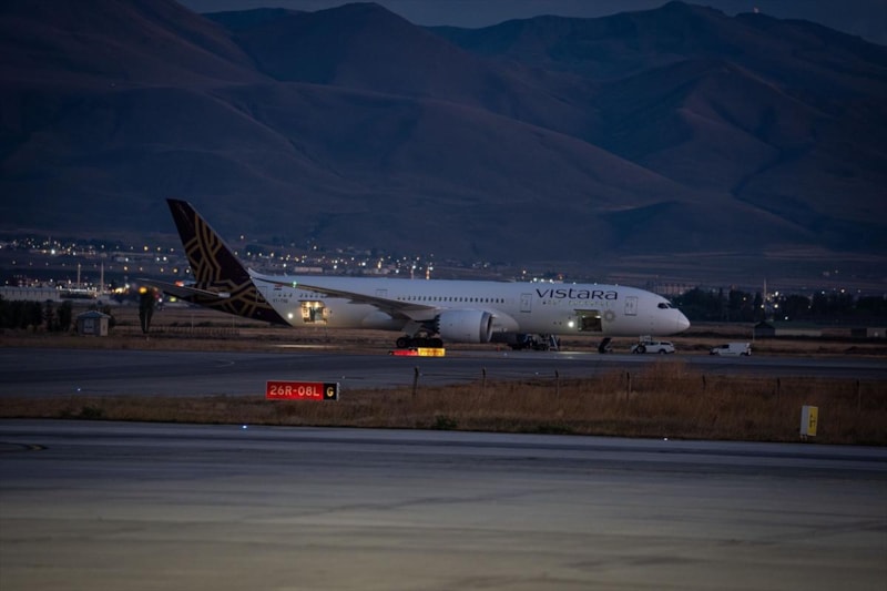 Hindistan'ın Mumbai kentinden Almanya'nın Frankfurt kentine giden Vistara Hava Yolları’na ait yolcu uçağı Erzurum'a acil iniş yaptı.