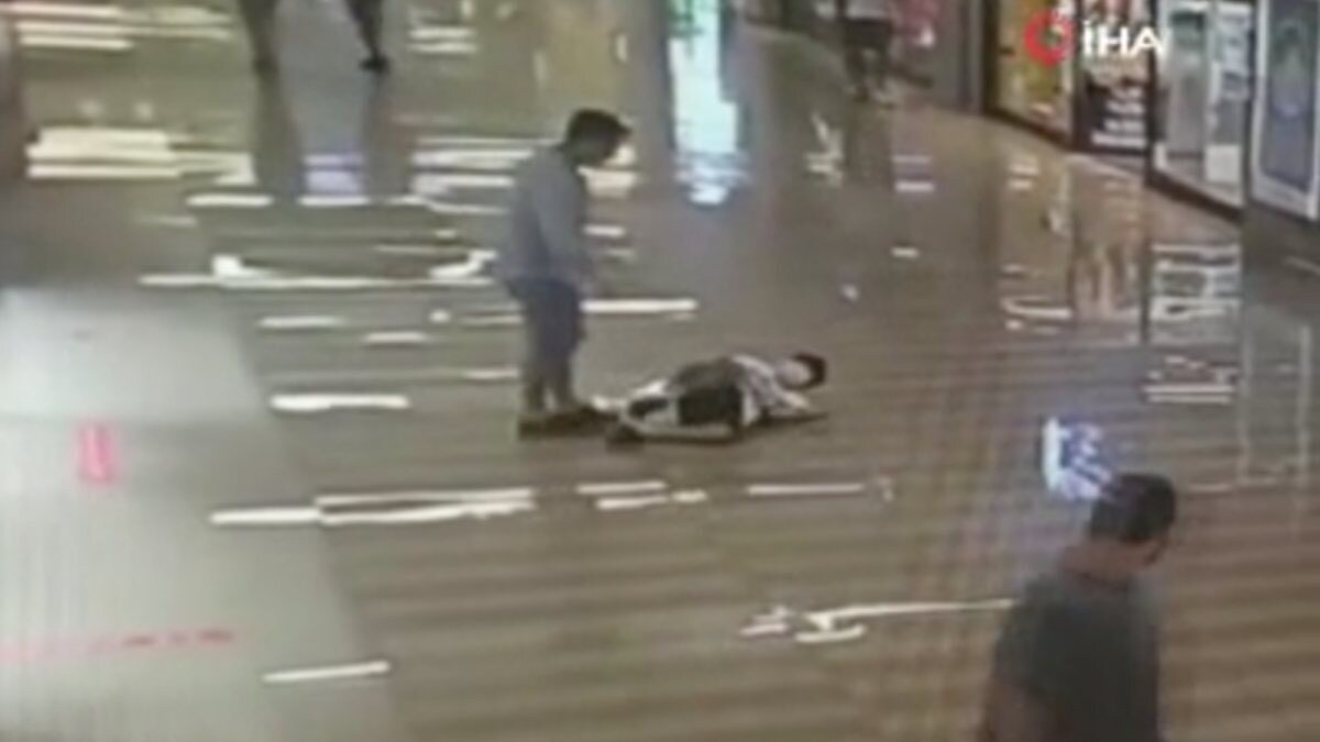 Bu sırada 10 yaşındaki Tugay yürüyen merdivenden bir adama çarptı.