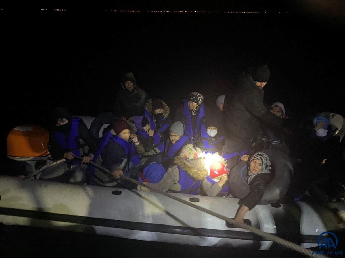 Sahil Güvenlik Mobil Radarı (MORAD-10) lastik botla Balıkesir'in Ayvalık ilçesi açıklarında, Midilli Adası'na geçmeye çalışan bir grup düzensiz göçmen olduğunu tespit etti.