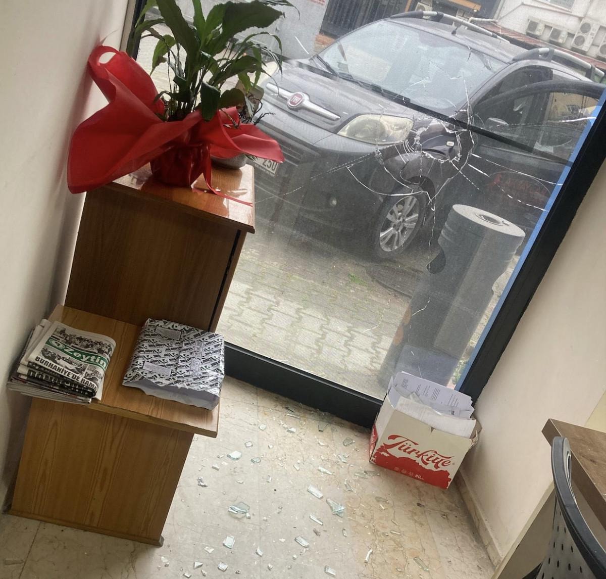 Şüphelinin düzenlediği saldırıda binanın camları kırılırken, kimsenin yaralanmadığı bildirildi.