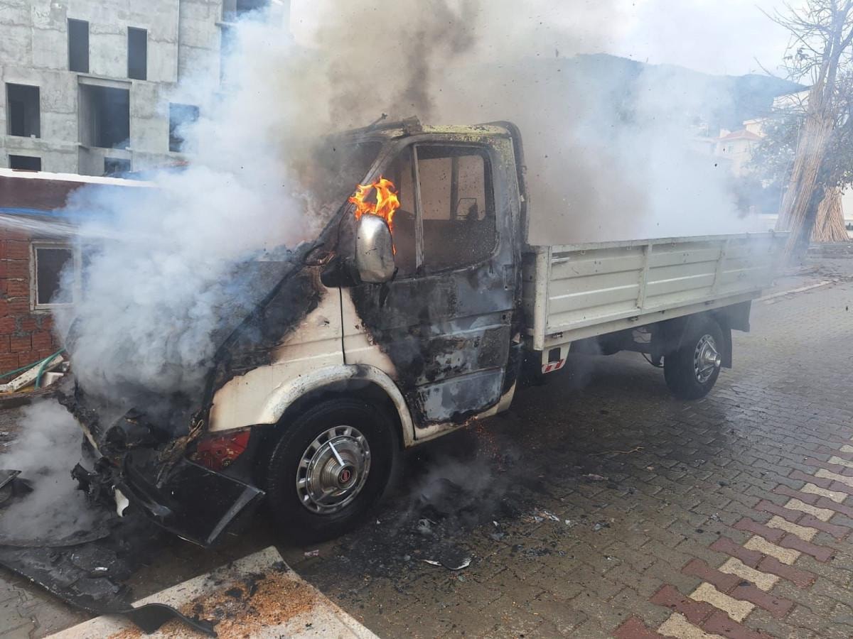 Kısa sürede alev topuna dönen kamyonet, itfaiye ekiplerinin çalışması ile söndürüldü.