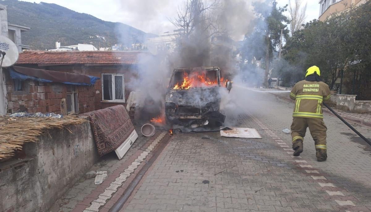 Balıkesir'de Edremit’in Altınoluk Mahallesi Basın Sitesi önünde park halinde olan G.A.’ya ait kamyonetten dumanlar çıkmaya başladı.