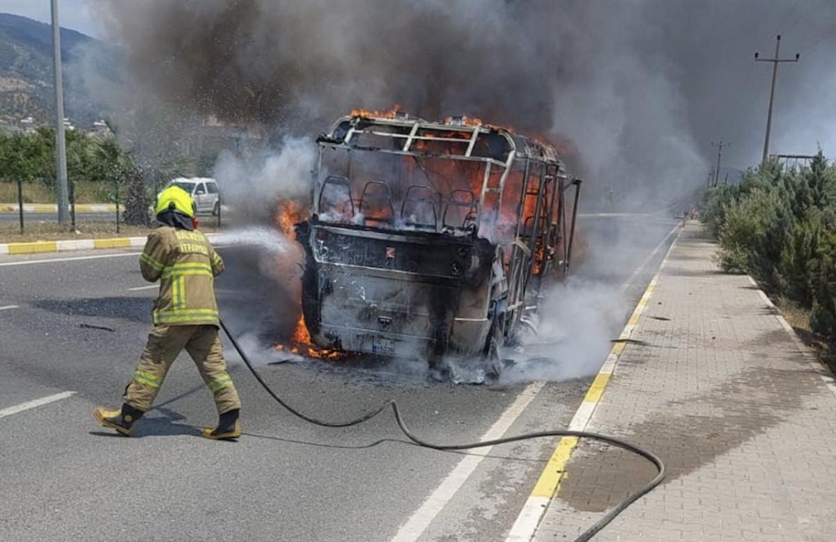 Balıkesir'in Erdemit ilçesinde yaşanan olayda, 33 yaşındaki C.K. idaresindeki minibüs seyir halindeyken alev aldı.