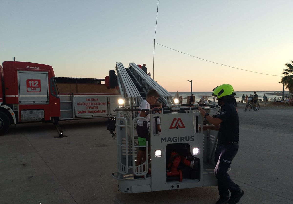 Durumun bildirilmesi üzerine olay yerine gelen Balıkesir Büyükşehir Belediyesi Edremit İtfaiye Grup Amirliği ekipleri, 42 metrelik merdivenli araçla kabinlere ulaştı. Ekipler, mahsur kalan kişileri güvenli şekilde tahliye etti.