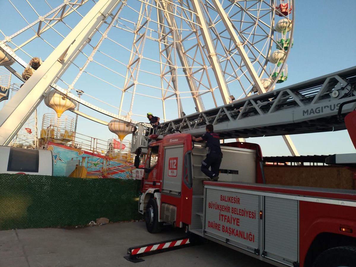 Balıkesir'in Edremit ilçesine bağlı turistik Akçay Mahallesi'nde, yaz aylarında artan nüfus ve yüksek elektrik tüketimi nedeniyle akşam saatlerinde ani bir elektrik kesintisi yaşandı. Kesinti sırasında lunaparkta bulunan dönme dolap aniden durdu. Kabinlerde bulunan ikisi çocuk 3 kişi yüksekten inemeyince mahsur kaldı.