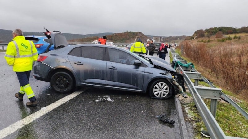 İstanbul-İzmir Otoyolu'nun Balıkesir Yunakdere Kuyualan mevkisinde 12 aracın karıştığı zincirleme trafik kazası meydana geldi.