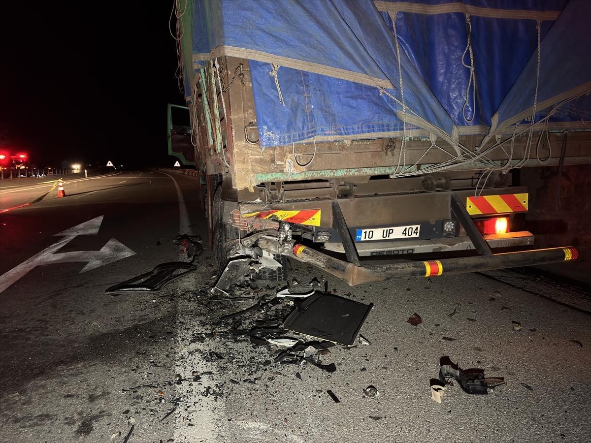 Balıkesir'in Bigadiç ilçesi Uşak kara yolu Dedeçınar Mahallesi mevkiinde İdris Güzel idaresindeki otomobil, Ramazan Bozoğlu yönetimindeki yem yüklü kamyona arkadan çarptı.