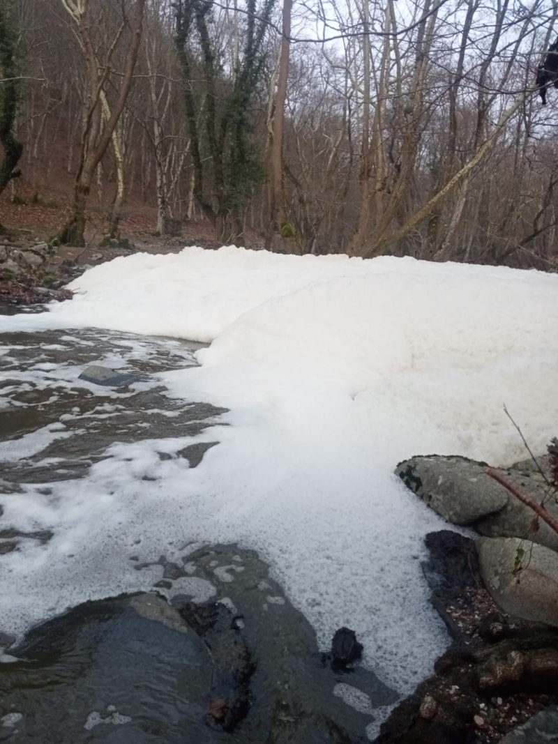 Balıkesir’in Manyas ilçesindeki Ketenlik Deresi, halkın sıkça piknik yaptığı bir alan olmasına rağmen son günlerde beyaz köpük tabakalarıyla kaplandı. İddiaya göre, Balıkesir'in merkez mahallelerindeki ahır ve kümeslerin yıkama işlemlerinden sonra, deterjan artıkları ve hayvan dışkılarının dereye karışması sonucu suyun rengi beyazlaşıp, kirli bir görünüm aldı.