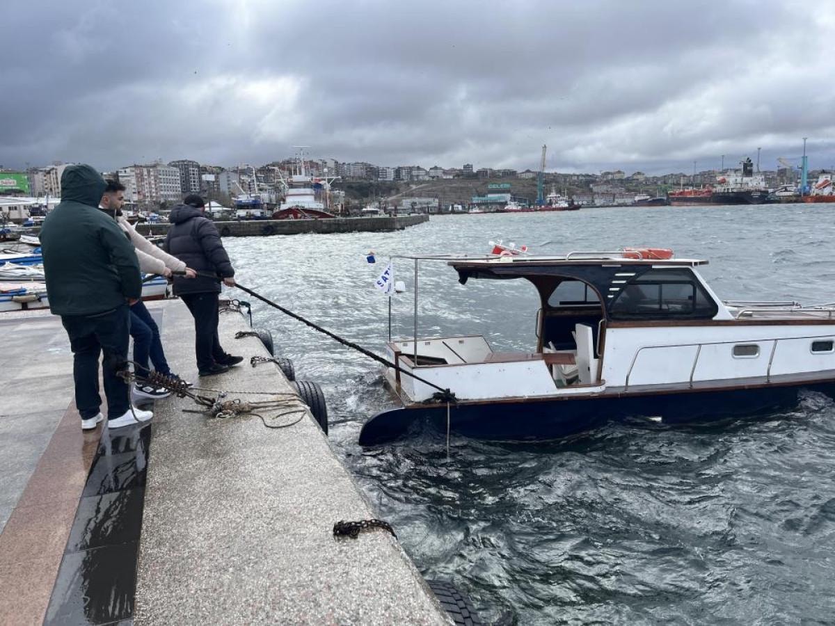 Kıyıdan yaklaşık 10 metre açıkta bağlı olan tekne, çevredekilerin yardımıyla kıyıya çekildi.