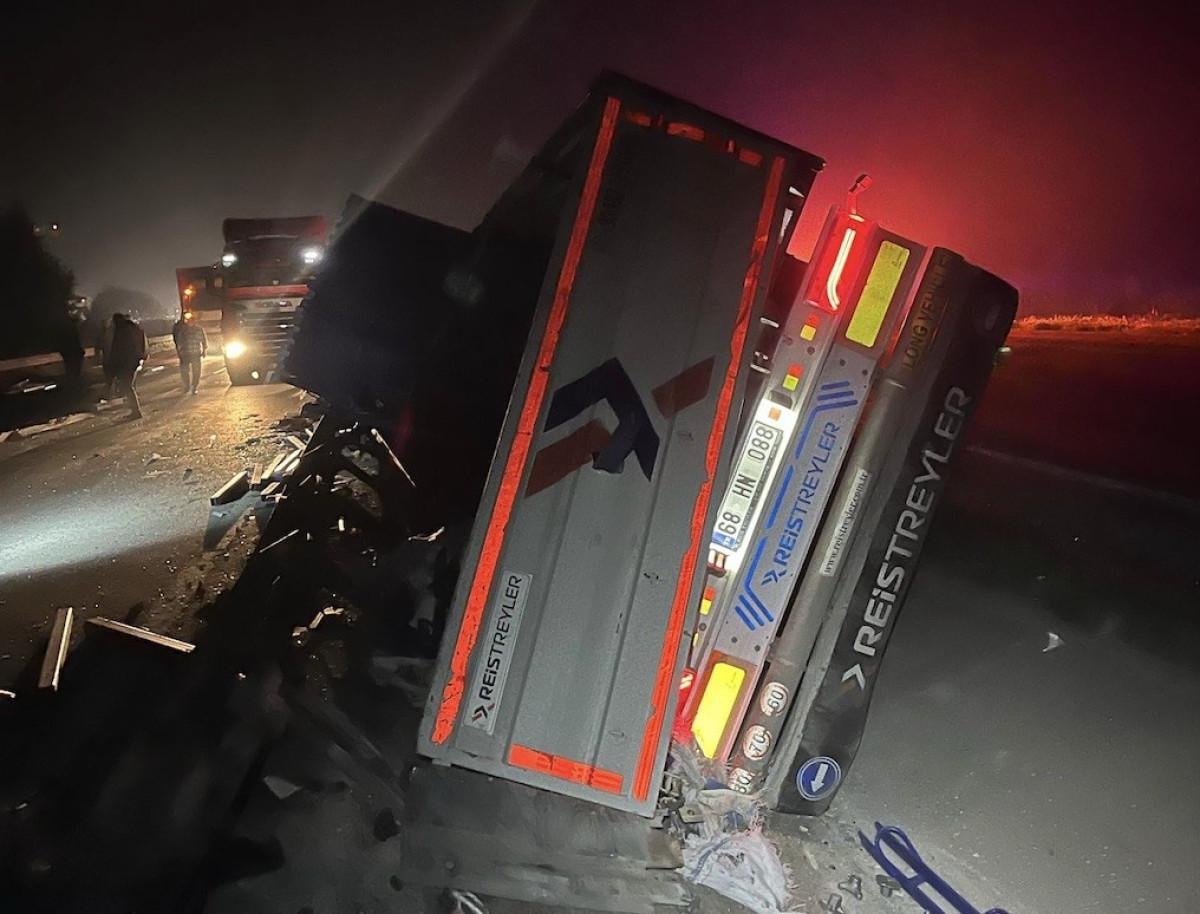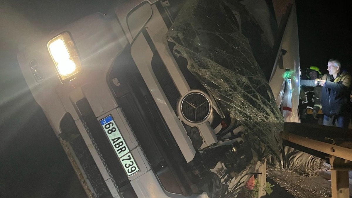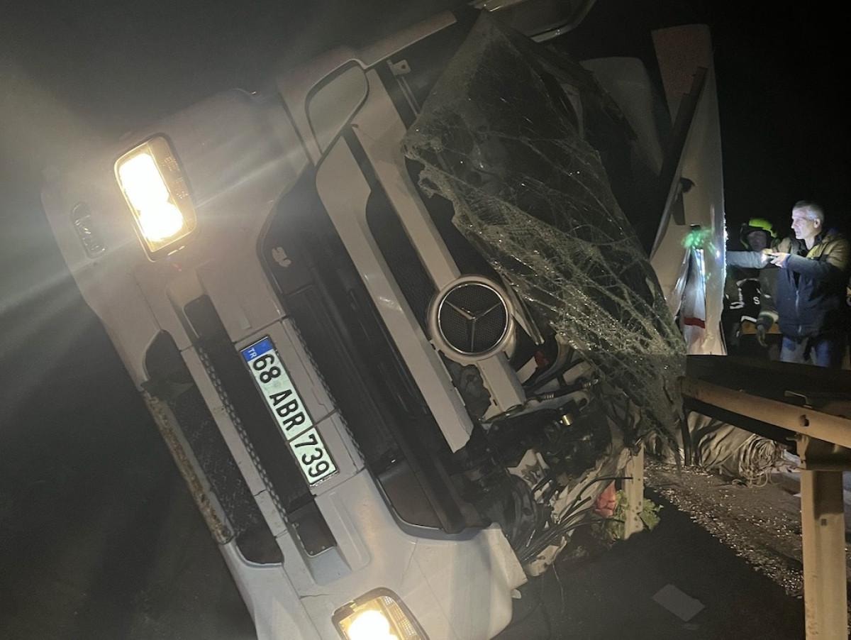 Sürücüsünün direksiyon hakimiyetini kaybetmesi sonucu kontrolden çıkan 68 ABR 739 plakalı tır, kaza yaptı.