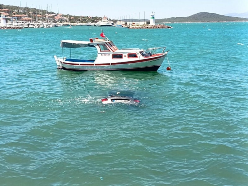 Bu arada sürücü de çevredeki balıkçılar ile belediye ekipleri tarafından bota alınıp, karaya çıkarıldı.