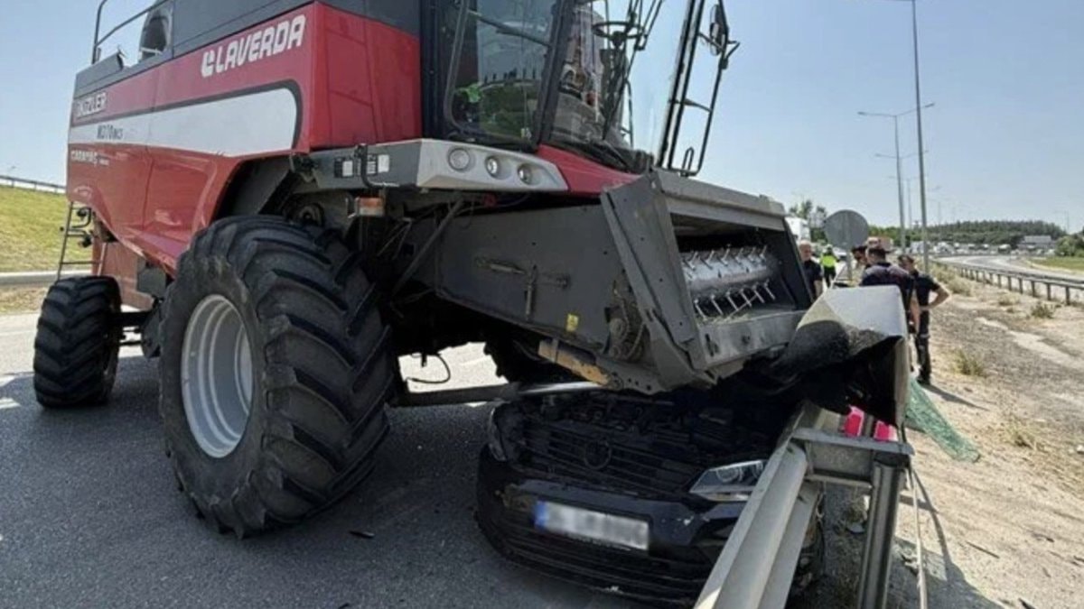 Balıkesir'de fren sistemi arızalanan biçerdöver kontrolden çıktı.