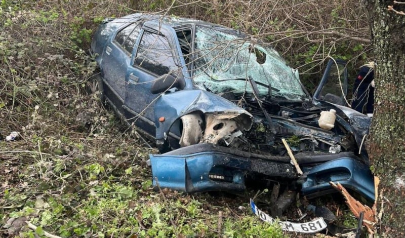 Otomobil yoldan çıkarak yol kenarında bulunan ağaca çarptı.