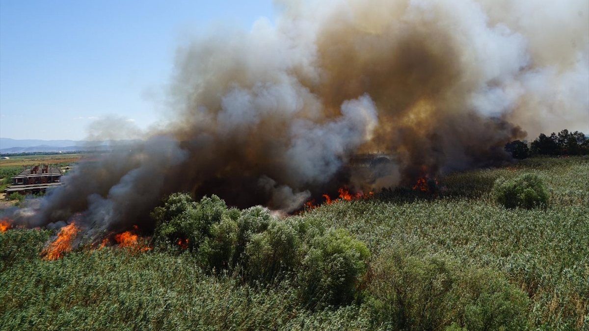 Balıkesir'in Edremit ilçesinde, yerleşim yerlerine yakın bölgedeki sazlık alanda yangın çıktı.