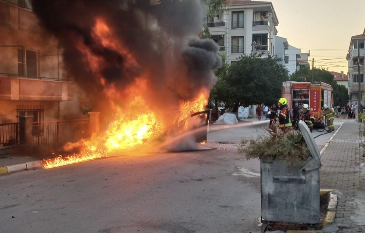 İtfaiye ekiplerinin söndürme çalışmaları sonrası yapılan kontrolde otomobilin kullanılamaz hale geldiği görüldü.