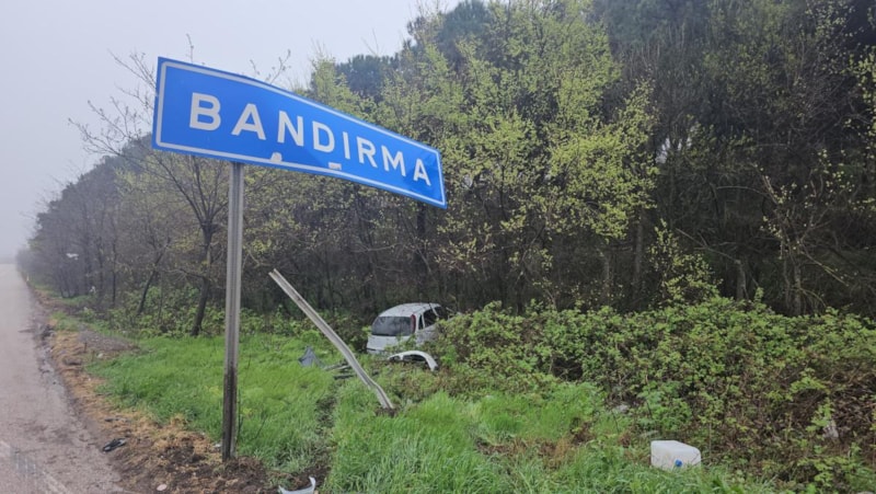 Kazanın meydana geldiği noktada Bandırma tabelasının hasar aldığı ve çevrede araçtan kopan parçaların bulunduğu gözlemlendi.