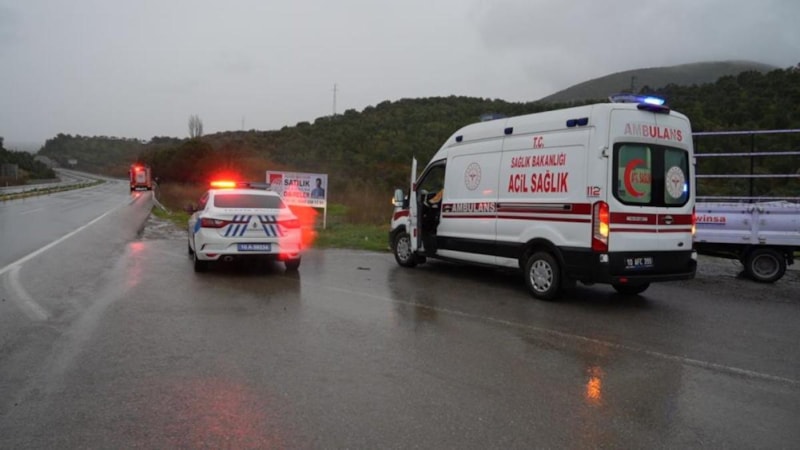 İzmir-Çanakkale karayolu Pelitköy kavşağında yağış nedeniyle kayganlaşan yolda Kübra G. (31) idaresindeki 17 AFB 614 plakalı otomobil, sürücünün direksiyon hakimiyetini kaybetmesi sonucu taklalar atarak 5 metre yükseklikten şarampole devrildi.