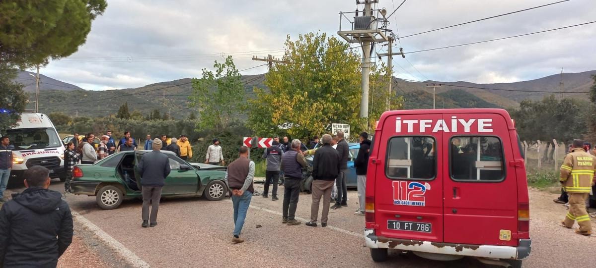 Balıkesir’in Erdek ilçesi Ocaklar Mahallesi yolu üzeri, TOMA Deresi mevkiinde, iki araç kafa kafaya çarpıştı.