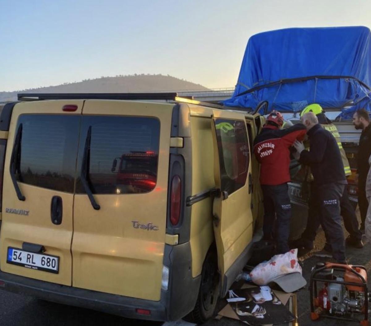 Otoyolda meydana gelen kazada minibüs, önünde seyir halindeki tıra arkadan çarptı.